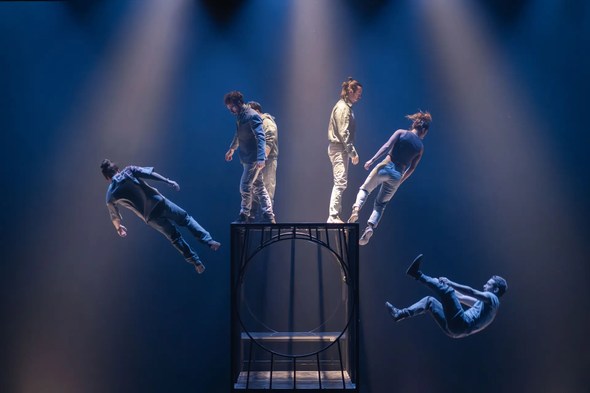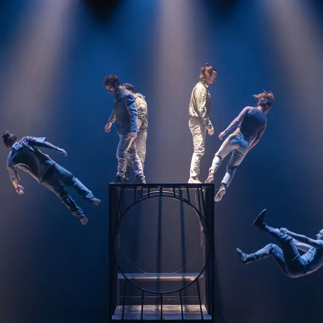 The Hors Surface Company brings a new face to circus arts. While retaining their astonishing ability to move through space in defiance of the laws of gravity, the acrobats evolve in a poetic universe adorned with a genuine aesthetic quest. The creation Face aux murs questions the doubts of the individual but also their ability to get back up after each fall. Carried away by this momentum, it offers the freedom to be oneself.